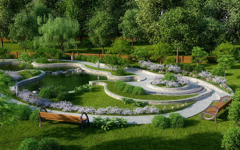 При создании ландшафтного дизайна в Челябинске особое внимание уделяется таким работам, как создание декоративных водопадов, ручьев и прудов. Современные технологии приходят на помощь ландшафтному дизайнеру при посадке крупномеров, то есть взрослых высоких деревьев.